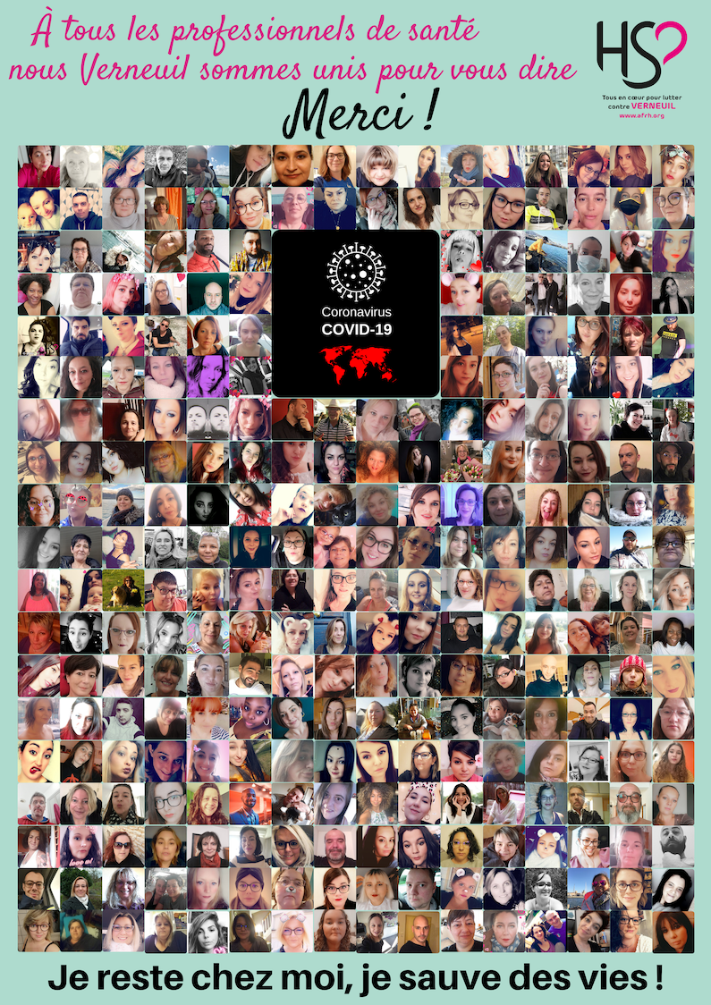 Les malades atteints de la maladie de Verneuil se sont unis pour créer ce poster pour remercier du fond du coeur tous les soignants engagés dans la lutte contre le Coronavirus.